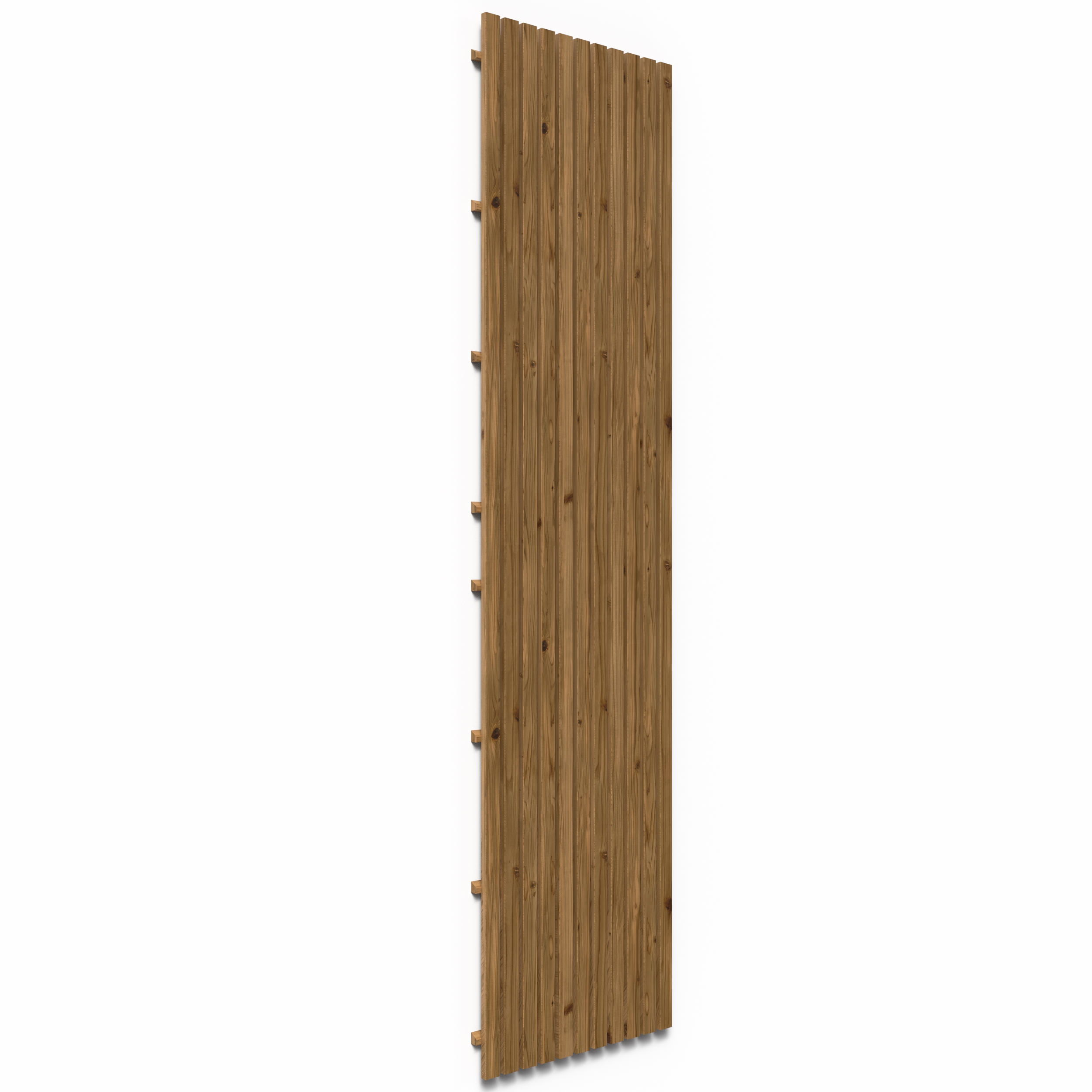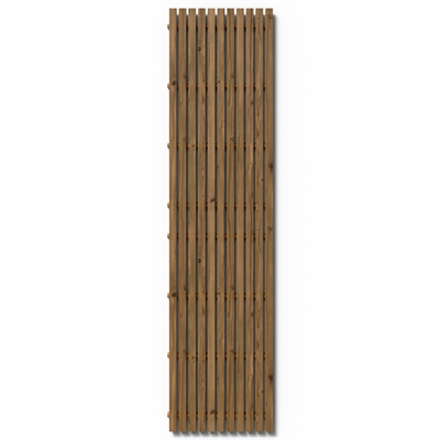 Panelet er produsert i ThermoWood – varmebehandlet tre som er utviklet for nordisk klima. Det gir høy formstabilitet, redusert fuktopptak og lang levetid med minimalt vedlikehold. Over tid vil treet få en naturlig, sølvgrå patina.
