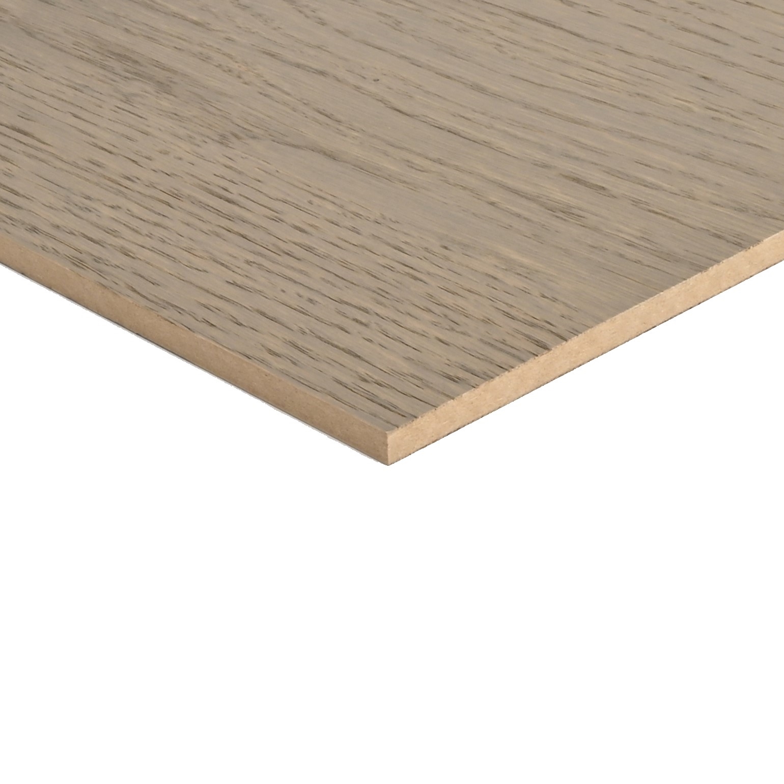 MDF plate med lakkert grå eikefinér skåret etter dine mål.