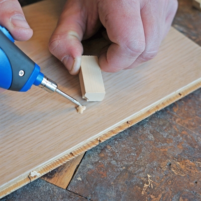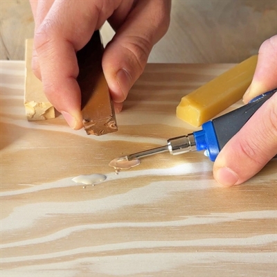 Har du fått en sprekk eller skade i en treoverflate? Med denne batterismelteren kan du enkelt smelte hardvoks ned i småskader, slik at treoverflaten blir så god som ny.